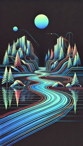 Title: Envisioning the Spokane River: A Vibrant, Futuristic Artistic Interpretation Photo ID: 44116