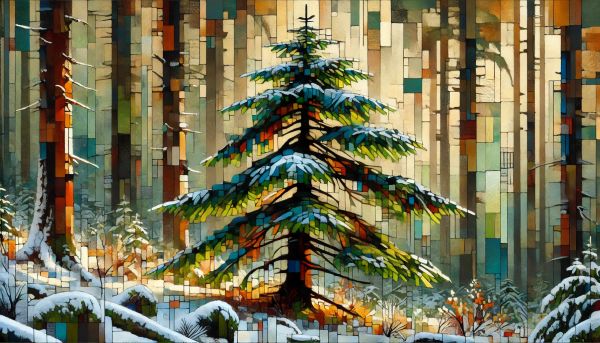 Title: A Cubist Winter: Artistic Deconstruction of a Fir Tree in Seattle Photo ID: 44395