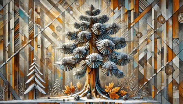 Title: Cubist Interpretation of a Douglas Fir in a Winter Wonderland