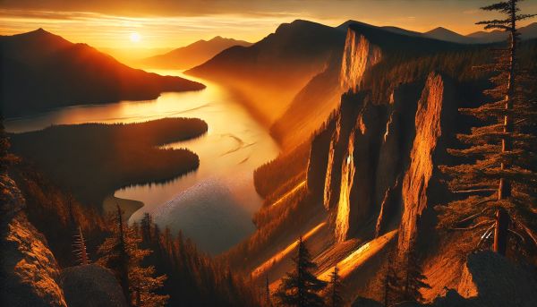 Title: Golden Hour Majesty at Rattlesnake Ledge, Cinematic Landscape Art Photo ID: 44480