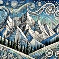 Artistic Interpretation of Glacier Peak Amid Surreal Swirling Skies