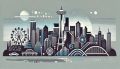 Minimalist Artistic Rendering of Seattle’s Iconic Skyline and Landmarks