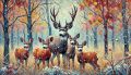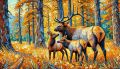 Whimsical Family of Roosevelt Elk in Autumnal Forest Dreamscape