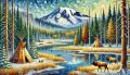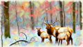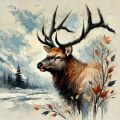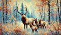 Majestic Elk Amidst Winter Serenity: Artistic Interpretation in Paint