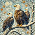 Majestic Family of Bald Eagles Amidst Snowy Winter Whirls