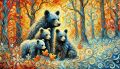 Enchanted Autumn Forest: Whimsical Portrait of Black Bear Family