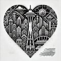 Intricate Decopunk Heart Featuring Iconic Seattle Landmarks