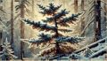 Winter's Elegance in Cubist Style: Western Red Cedar Amidst Snow