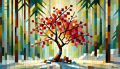 Winter Harmonies: Cubist Interpretation of a Redwood in Snow