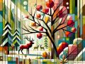 Cubist Winter Wonderland: Deer Amidst Vibrant Forest and Snow