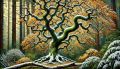Captivating Cubist Rendering of a Snow-Draped Bigleaf Maple Tree