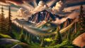 Enchanting Artistic Representation of Mount Rainier and Encompassing Wilderness