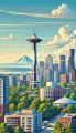 Vibrant Artistic Interpretation of Seattle's Iconic Landmarks and Natural Beauty