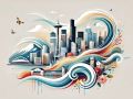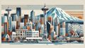Vibrant Artistic Representation of Seattle's Skyline and Iconic Landmarks