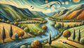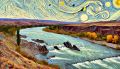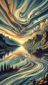 Majestic Whirls of the Columbia River in a Surreal Artistic Illustration