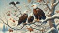 Majestic Bald Eagles Amidst Snowy Branches and Falling Flakes