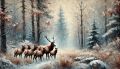 Winter's Majestic Gathering: An Elk Family Amidst Snowy Trees