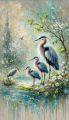 Ethereal Morning in the Spring Forest: Family of Great Blue Herons