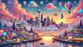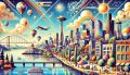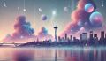 Whimsical Dawn in Seattle: A Vibrant, Playful Skyline Celebration