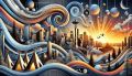 Whimsical Sunrise Over Seattle: A Cubist-Decopunk Inspired View