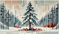 Transcendent Nature: A Cubist Winter Landscape with Trees and Deer