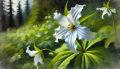 Artistic Interpretation of a Western Trillium in Lush Washington Forest