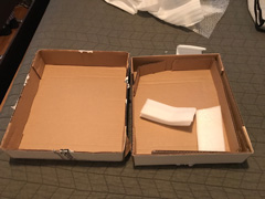 If you've ordered a frame with plexi and backing board, often the plexi is already slotted inside the frame for safe keeping. It appears like a sheet of cardboard.